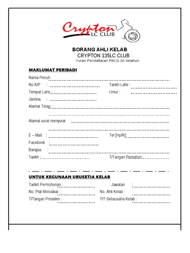 Contoh Borang Permohonan Ahli Kelab Motor Pdf